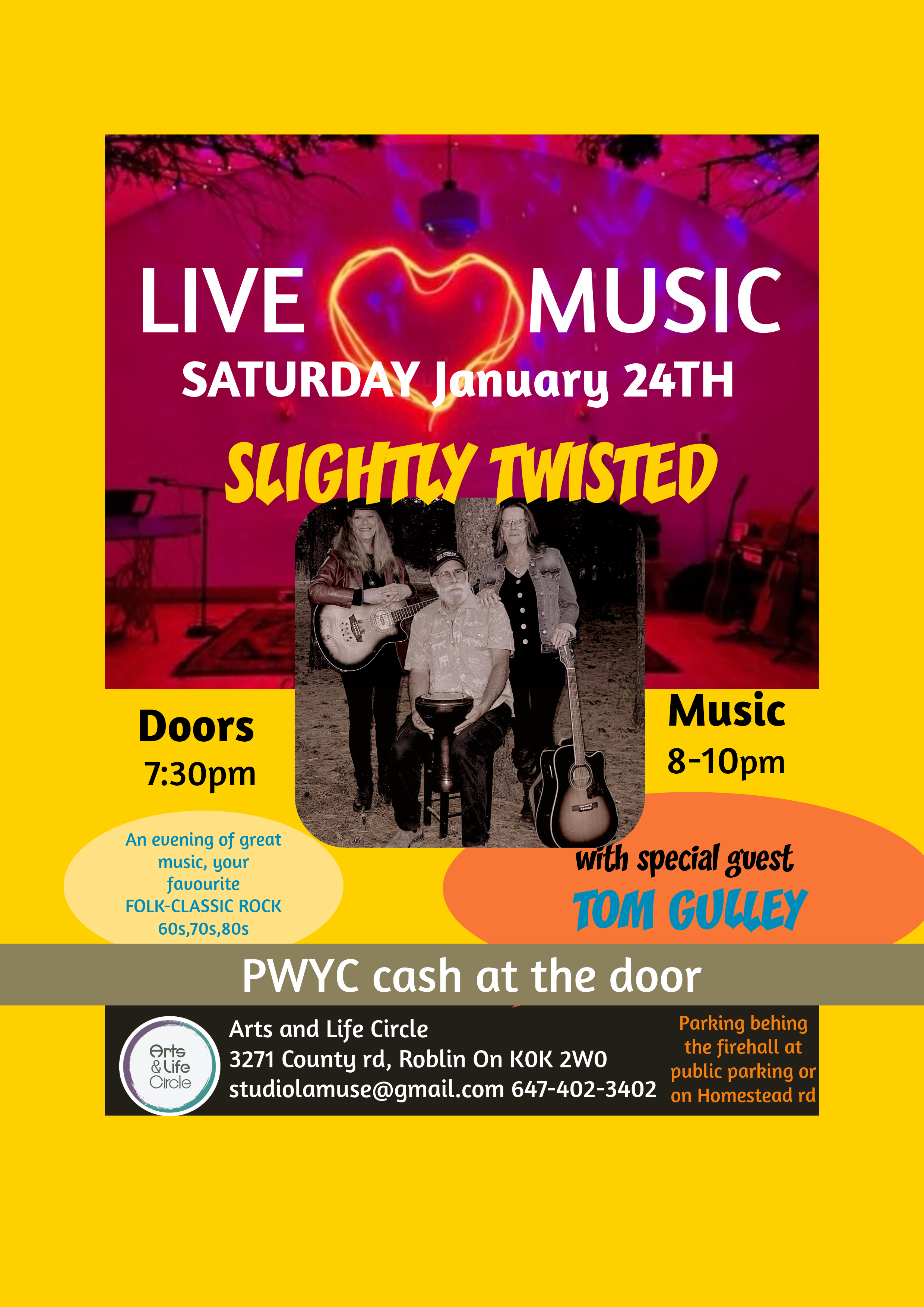You have the chance to hear some of the most talented musicians of the greater Napanee area! On a pay What you can basis, pay cash at the door.